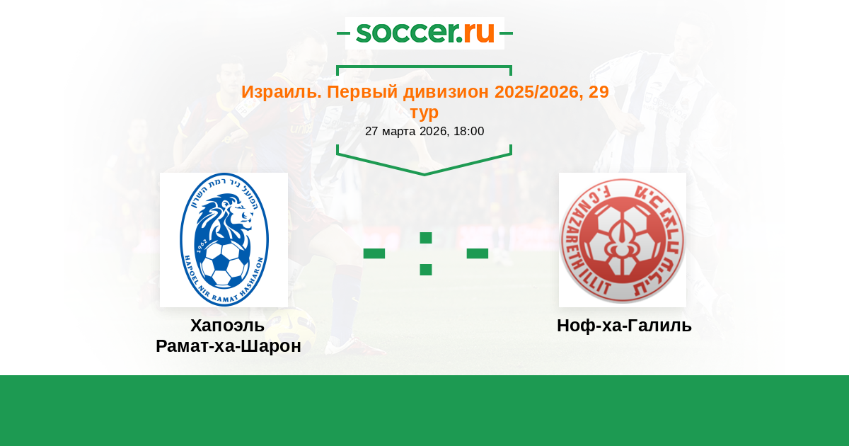 Израиль. Первый дивизион 02.04.2010 Хапоэль Рамат-ха-Шарон Логотип футбольный клуб Хапоэль Рамат-ха-Шарон 1:1 Логотип футбольный клуб Ноф-ха-Галиль (Назарет Иллит) Ноф-ха-Галиль