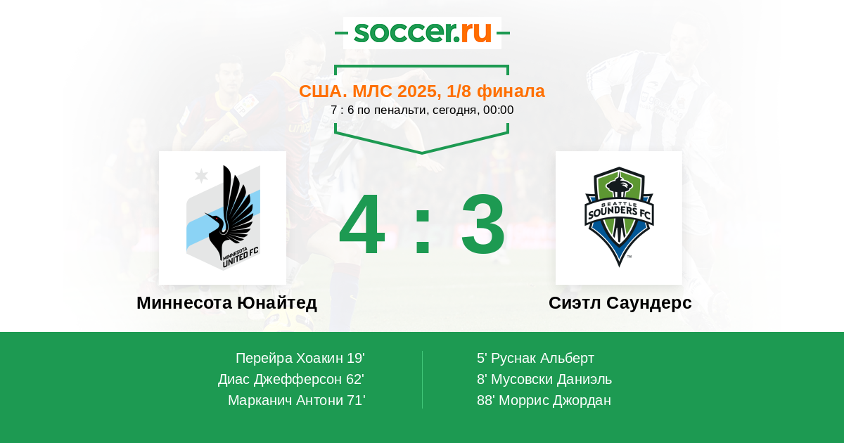 Протокол матча Миннесота Юнайтед против Сиэтл Саундерс