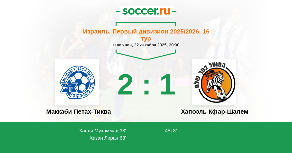 Протокол матча Маккаби Петах-Тиква против Хапоэль Кфар-Шалем