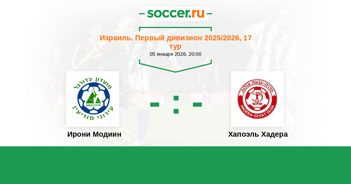 Протокол матча Ирони Модиин против Хапоэль Хадера