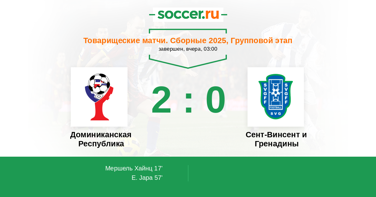 Протокол матча Доминиканская Республика против Сент-Винсент и Гренадины