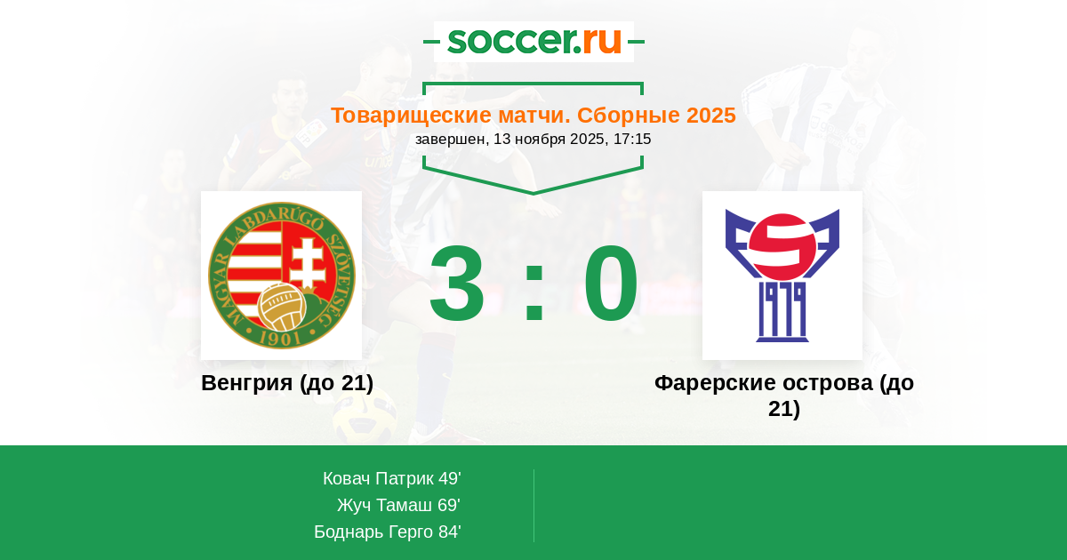 Протокол матча Венгрия (до 21) против Фарерские острова (до 21)