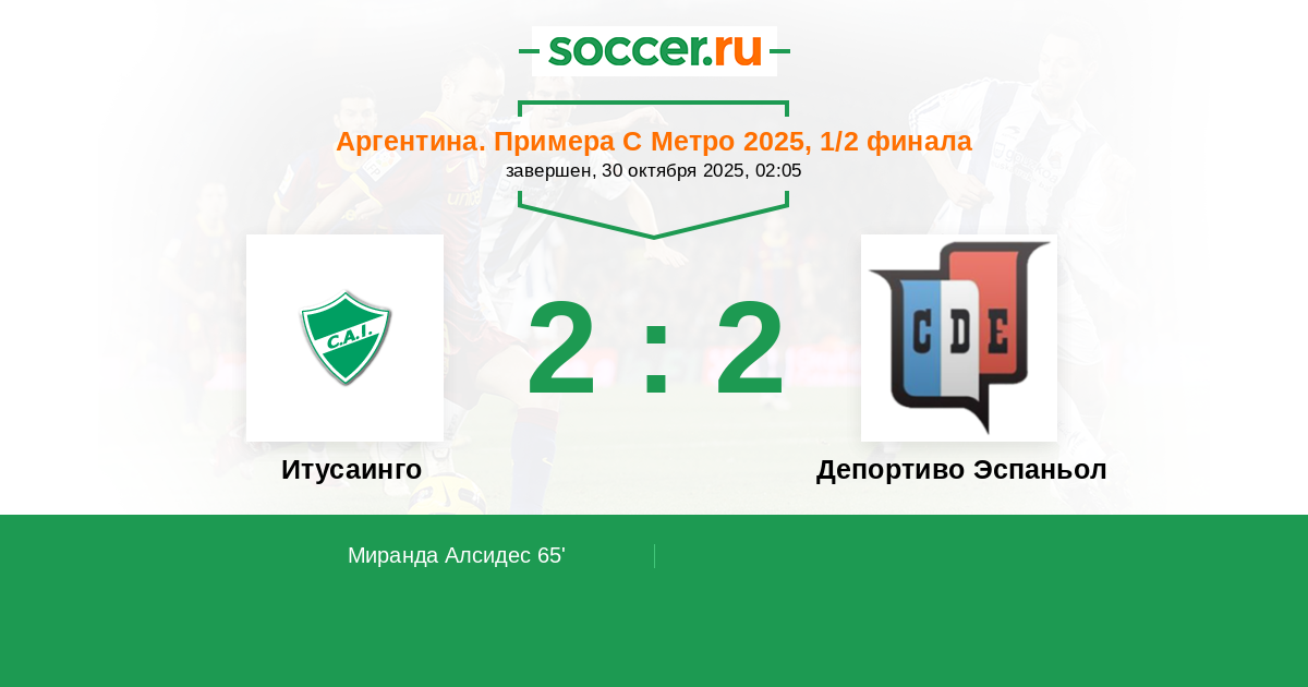 Протокол матча Итусаинго против Депортиво Эспаньол