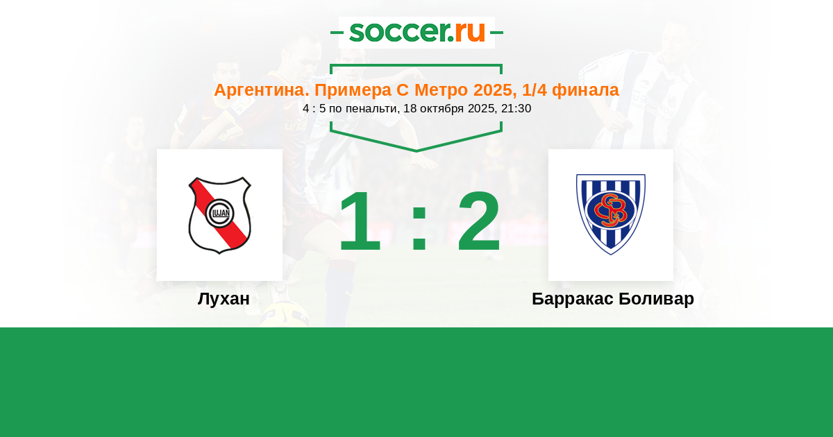 Аргентина. Примера С Метро 13.10.2025 Барракас Боливар Логотип футбольный клуб Барракас Боливар 0:0 Логотип футбольный клуб Лухан Лухан