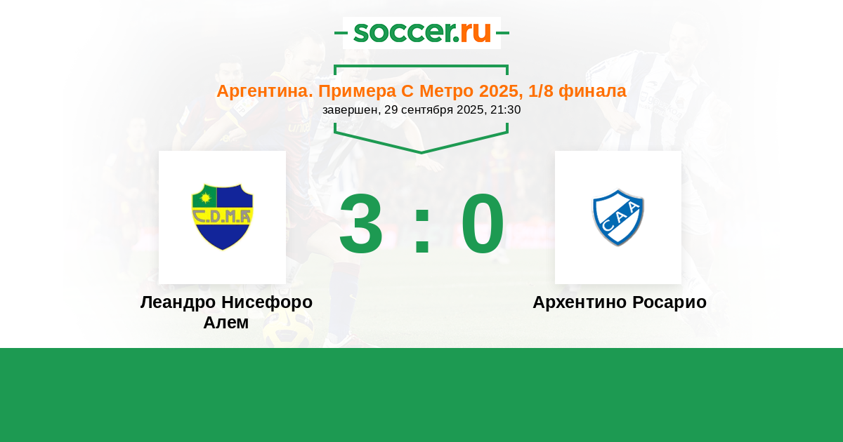 История матча Леандро Нисефоро Алем против Архентино Росарио