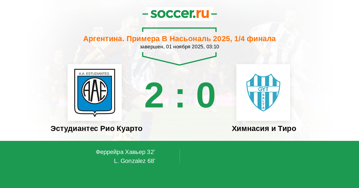 Протокол матча Эстудиантес Рио Куарто против Химнасия и Тиро