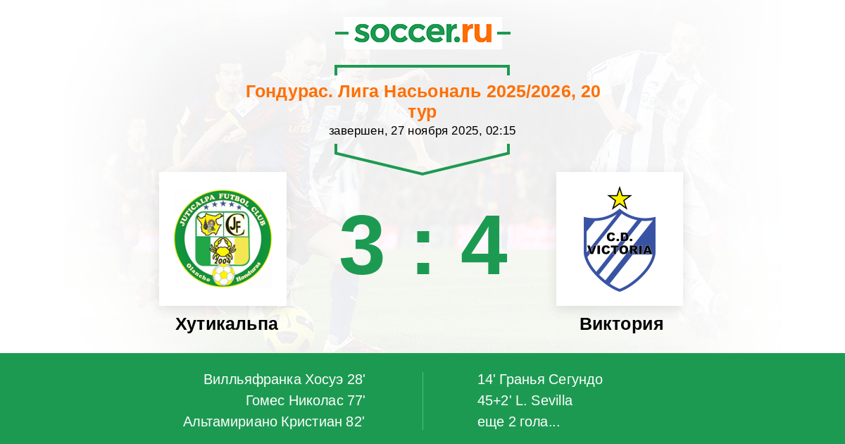 Протокол матча Хутикальпа против Виктория