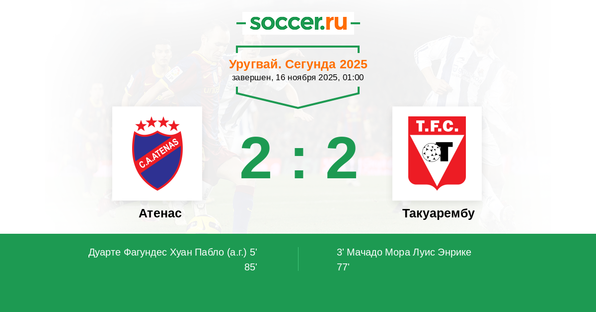 5' (1:1) Автогол Дуарте Фагундес Хуан Пабло