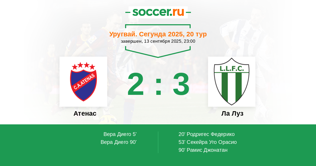 Протокол матча Атенас против Ла Луз