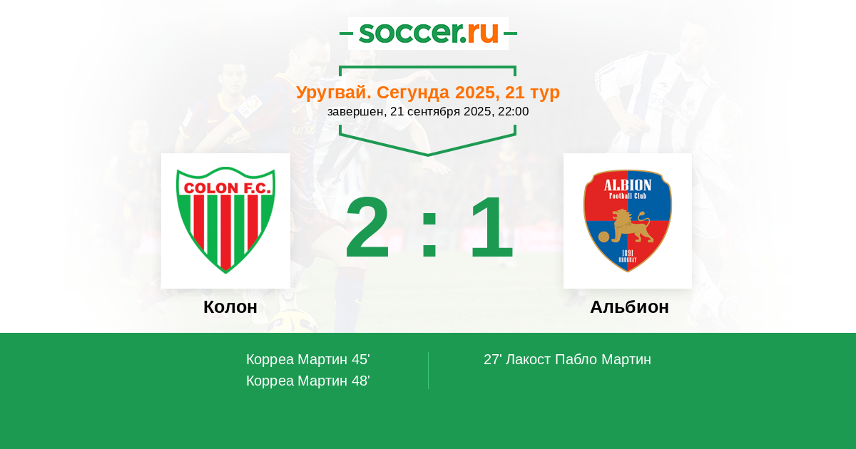 Протокол матча Колон против Альбион