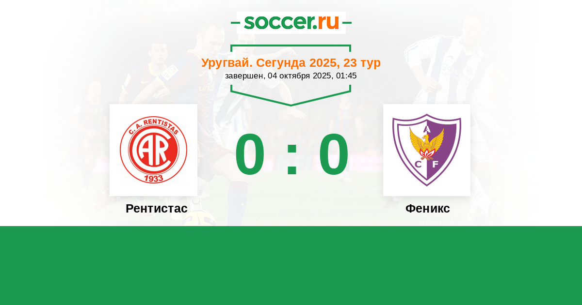 Уругвай. Примера A 15.10.2022 Рентистас Логотип футбольный клуб Рентистас (Монтевидео) 1:3 Логотип футбольный клуб Феникс (Монтевидео) Феникс