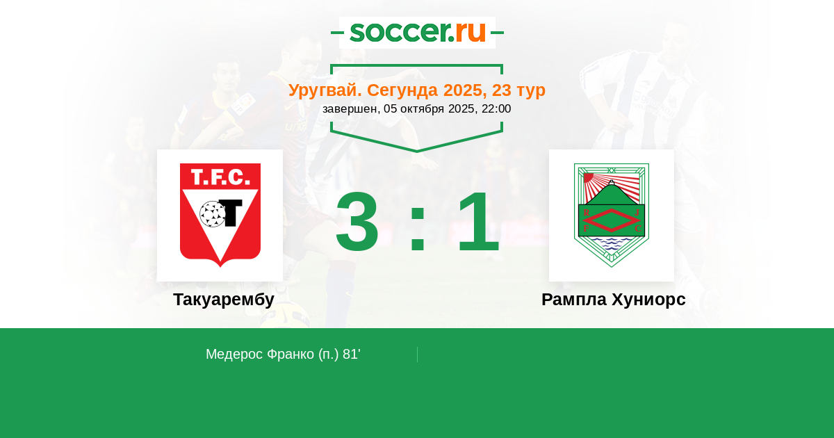 Протокол матча Такуарембу против Рампла Хуниорс