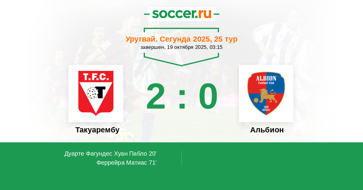 Протокол матча Такуарембу против Альбион