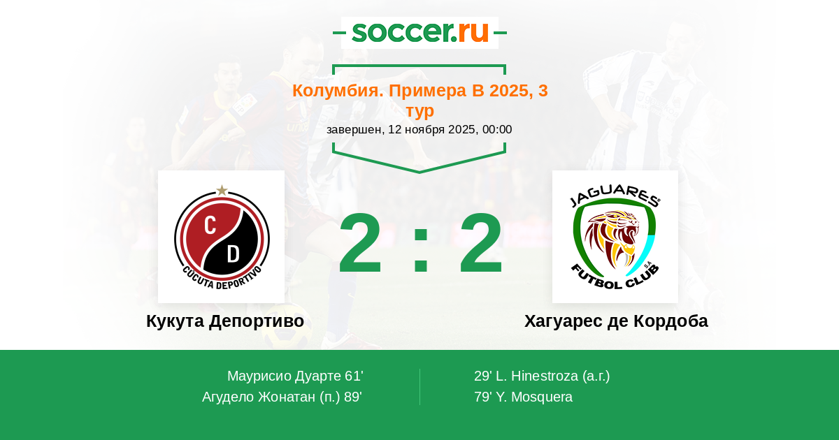 Протокол матча Кукута Депортиво против Хагуарес де Кордоба