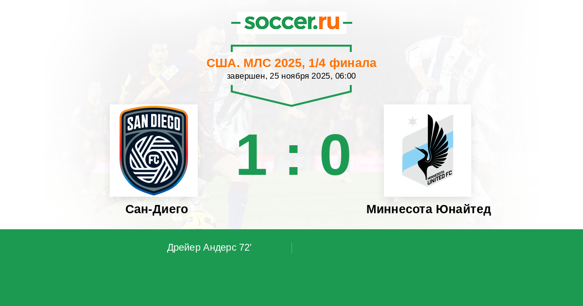 Протокол матча Сан-Диего против Миннесота Юнайтед