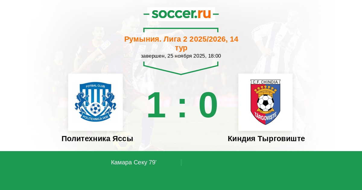 Протокол матча Политехника Яссы против Киндия Тырговиште
