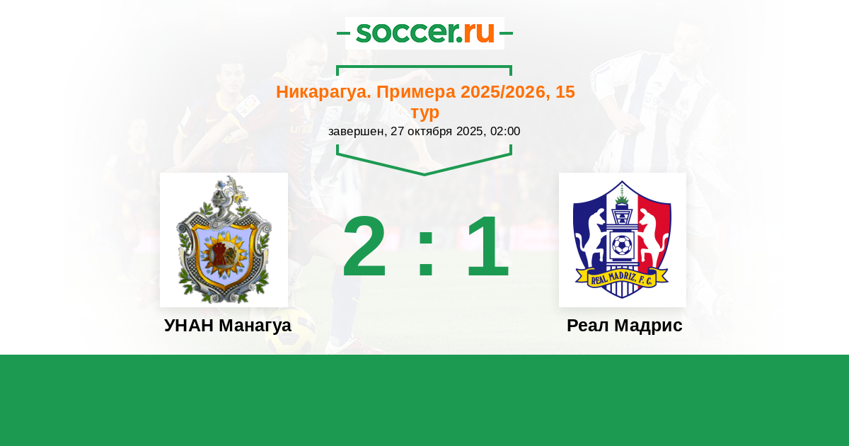 Никарагуа. Примера 25.10.2014 УНАН Манагуа Логотип футбольный клуб УНАН Манагуа 2:3 Логотип футбольный клуб Реал Мадрис (Сомото) Реал Мадрис