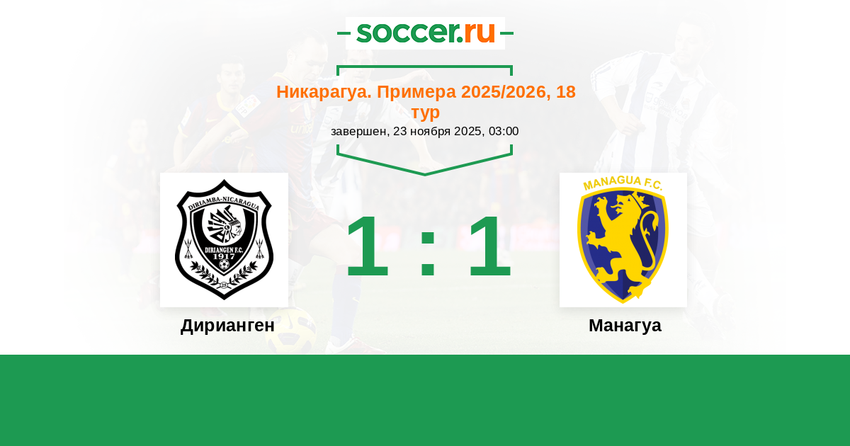 Никарагуа. Примера 11.02.2024 Дирианген Логотип футбольный клуб Дирианген (Дириамба) 1:1 Логотип футбольный клуб Манагуа Манагуа