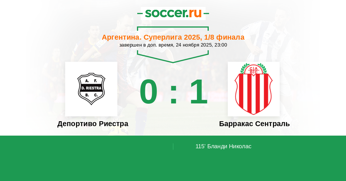 Протокол матча Депортиво Риестра против Барракас Сентраль