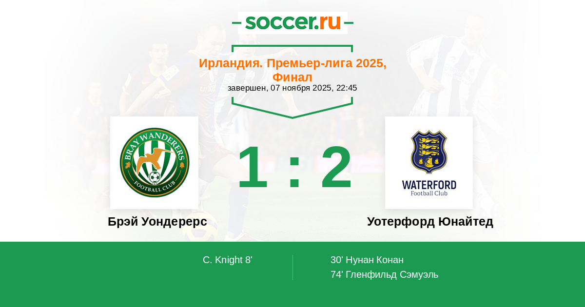 Протокол матча Брэй Уондерерс против Уотерфорд Юнайтед