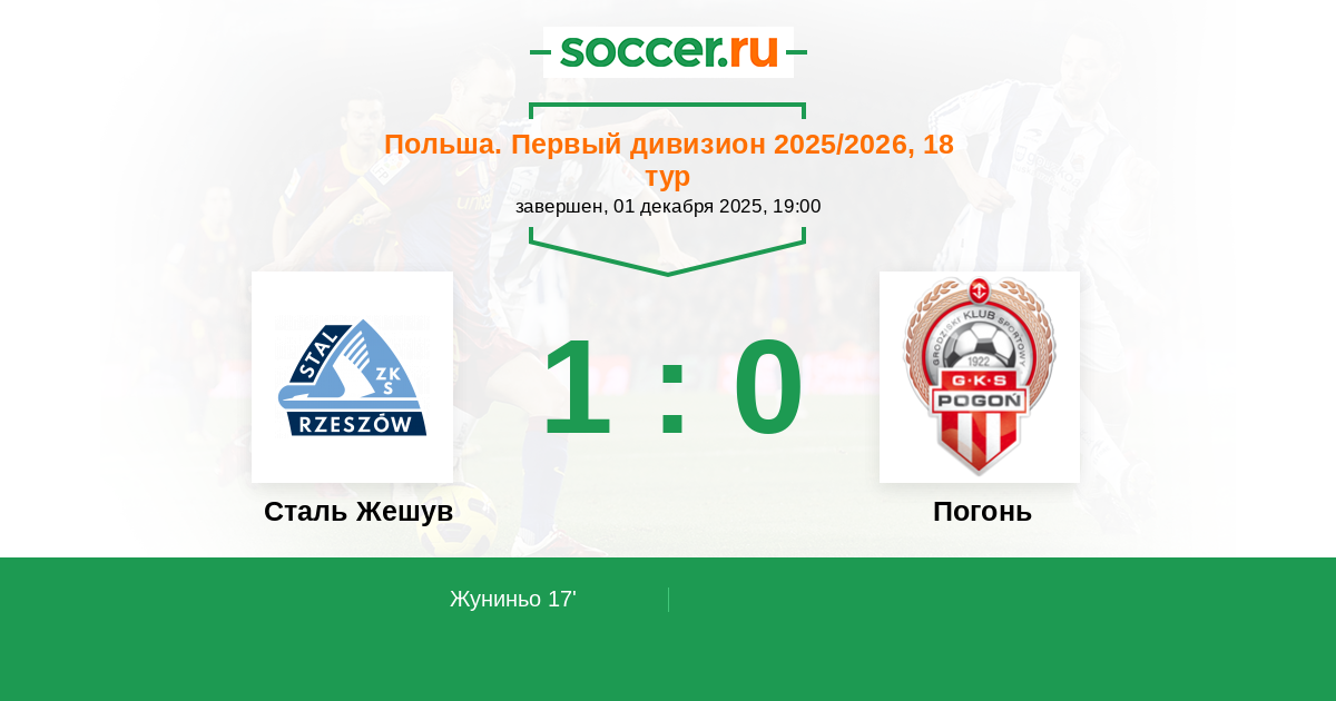 Протокол матча Сталь Жешув против Погонь