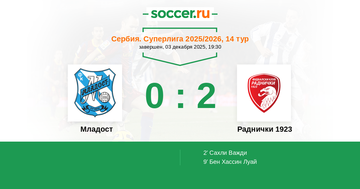Протокол матча Младост против Раднички 1923
