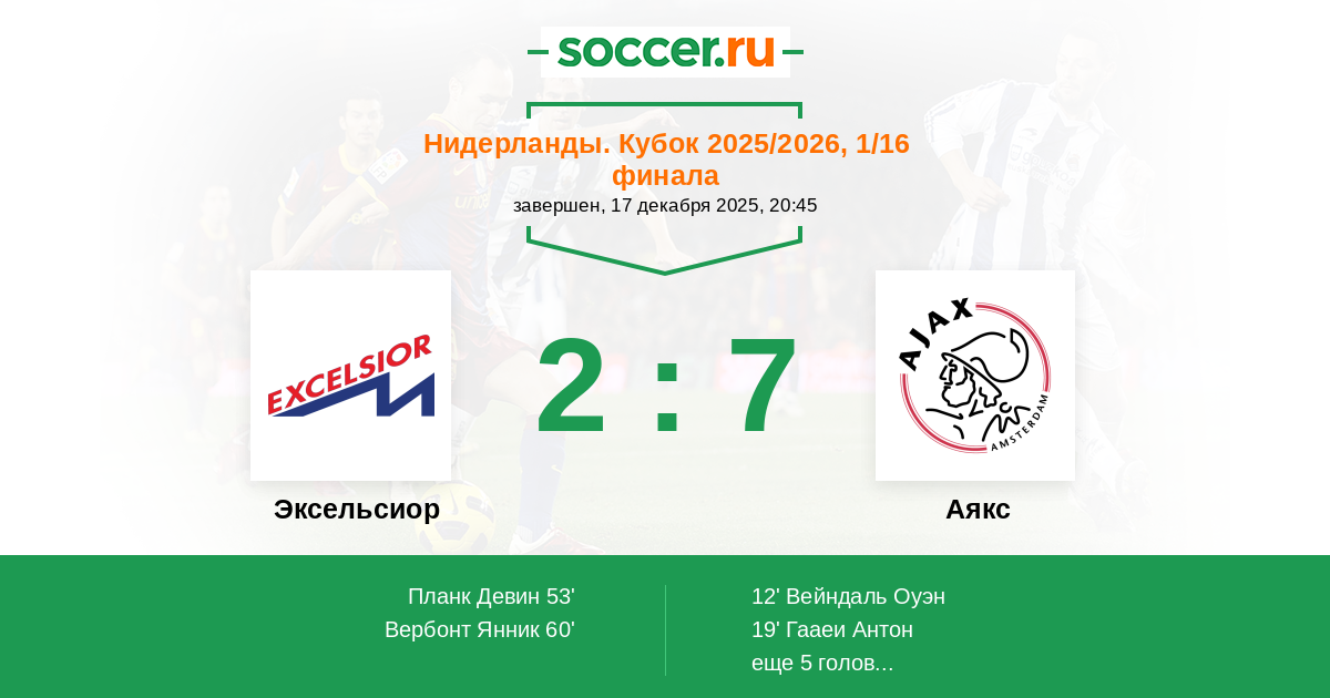 Протокол матча Эксельсиор против Аякс