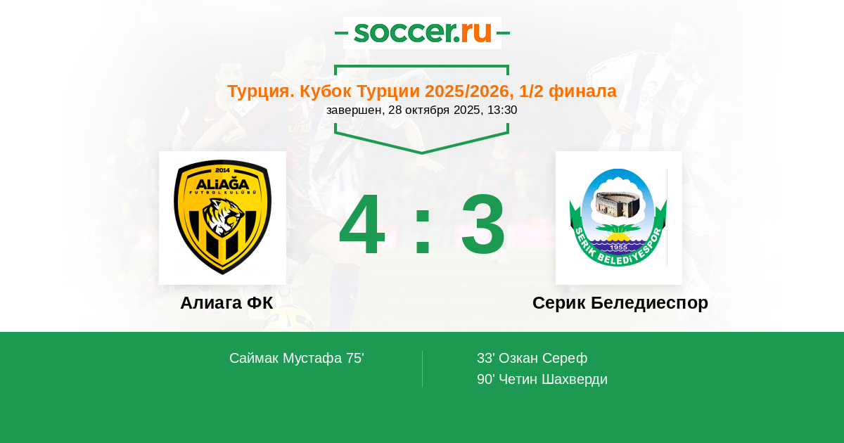 Протокол матча Алиага ФК против Серик Беледиеспор