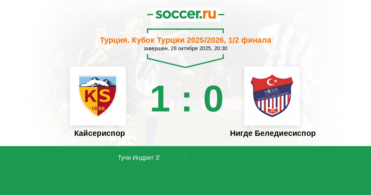 Протокол матча Кайсериспор против Нигде Беледиесиспор