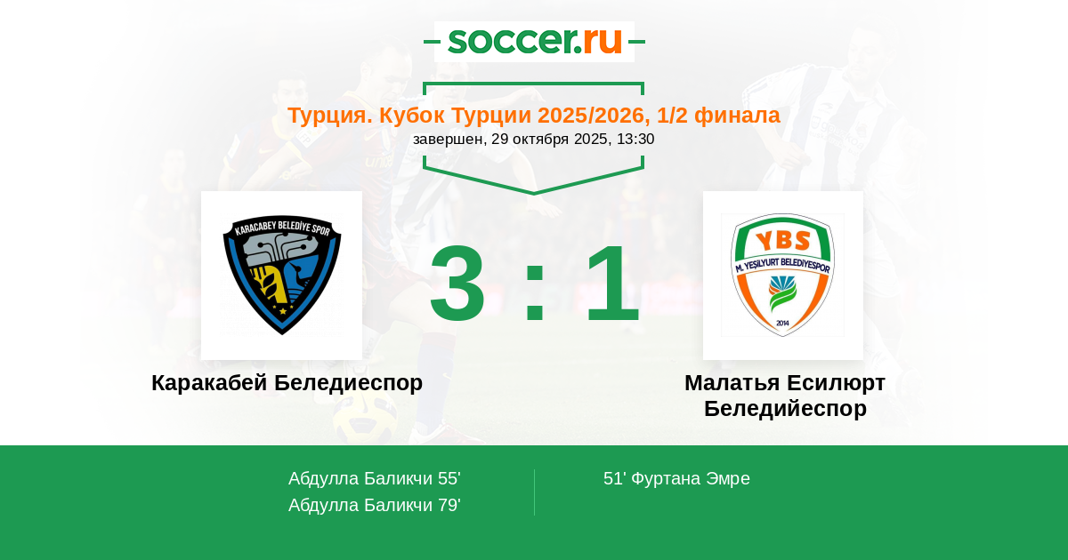 Протокол матча Каракабей Беледиеспор против Малатья Есилюрт Беледийеспор