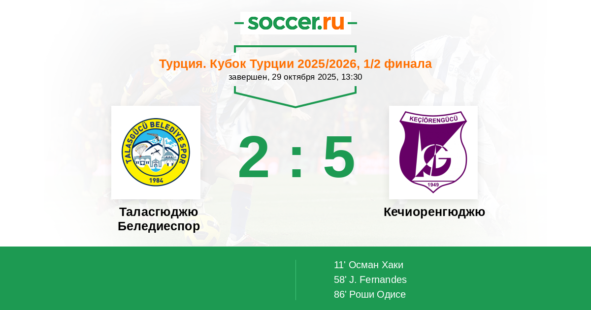Протокол матча Таласгюджю Беледиеспор против Кечиоренгюджю