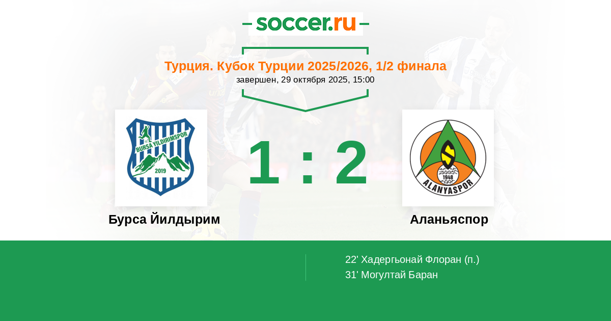 Протокол матча Бурса Йилдырим против Аланьяспор