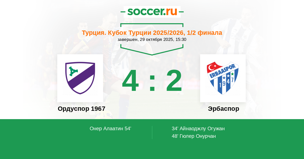 Протокол матча Ордуспор 1967 против Эрбаспор