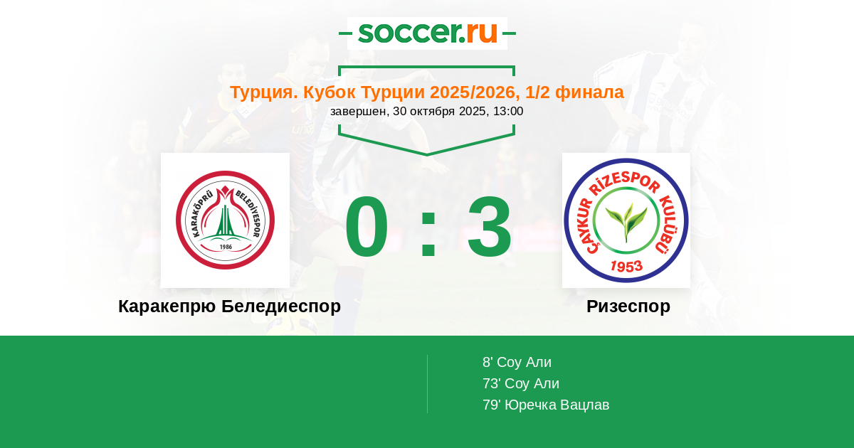 Протокол матча Каракепрю Беледиеспор против Ризеспор