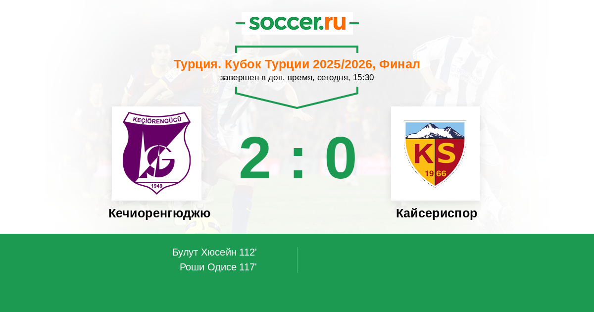 Протокол матча Кечиоренгюджю против Кайсериспор