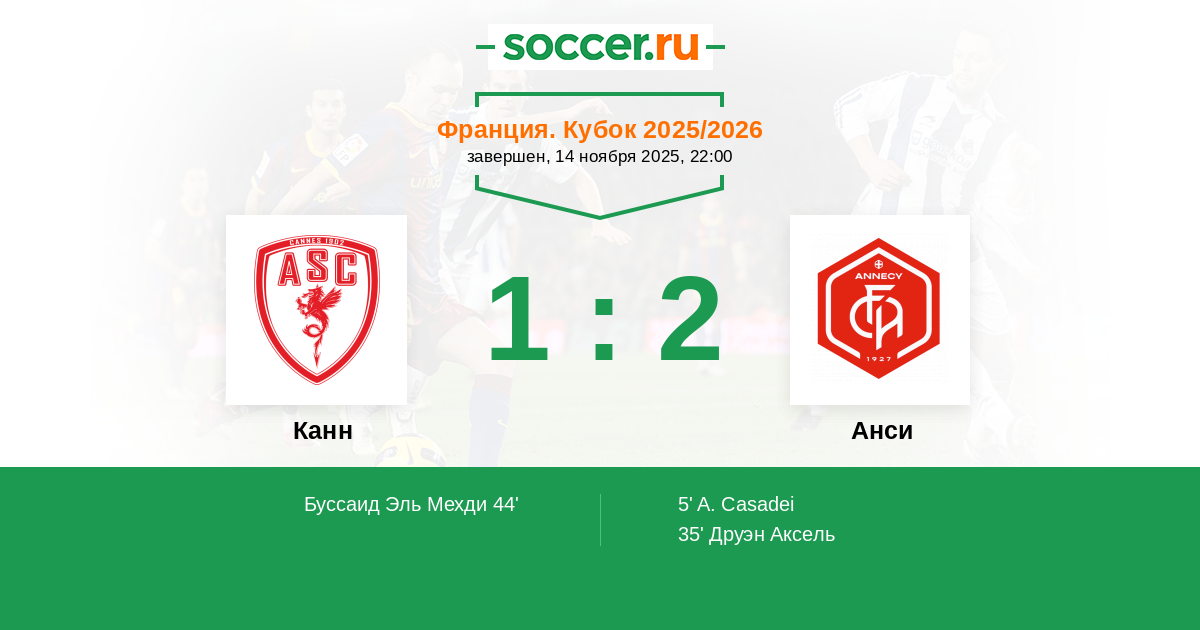 Протокол матча Канн против Анси