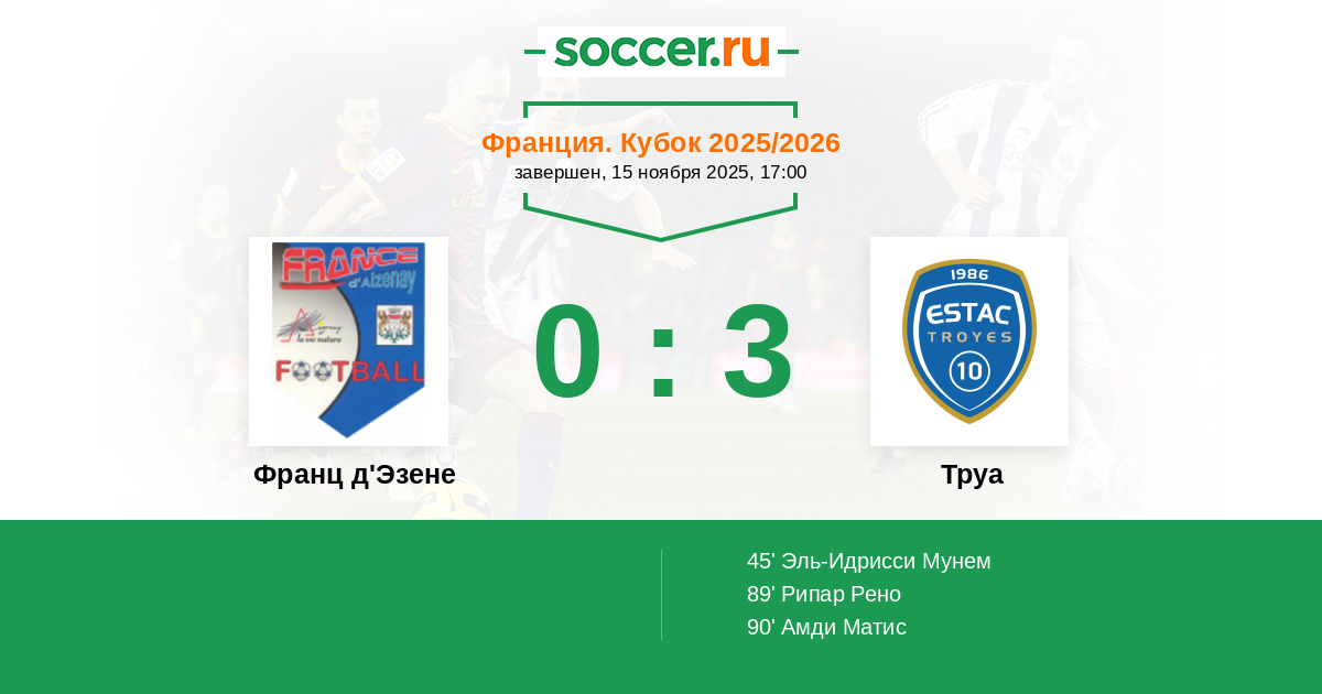 Протокол матча Франц д'Эзене против Труа