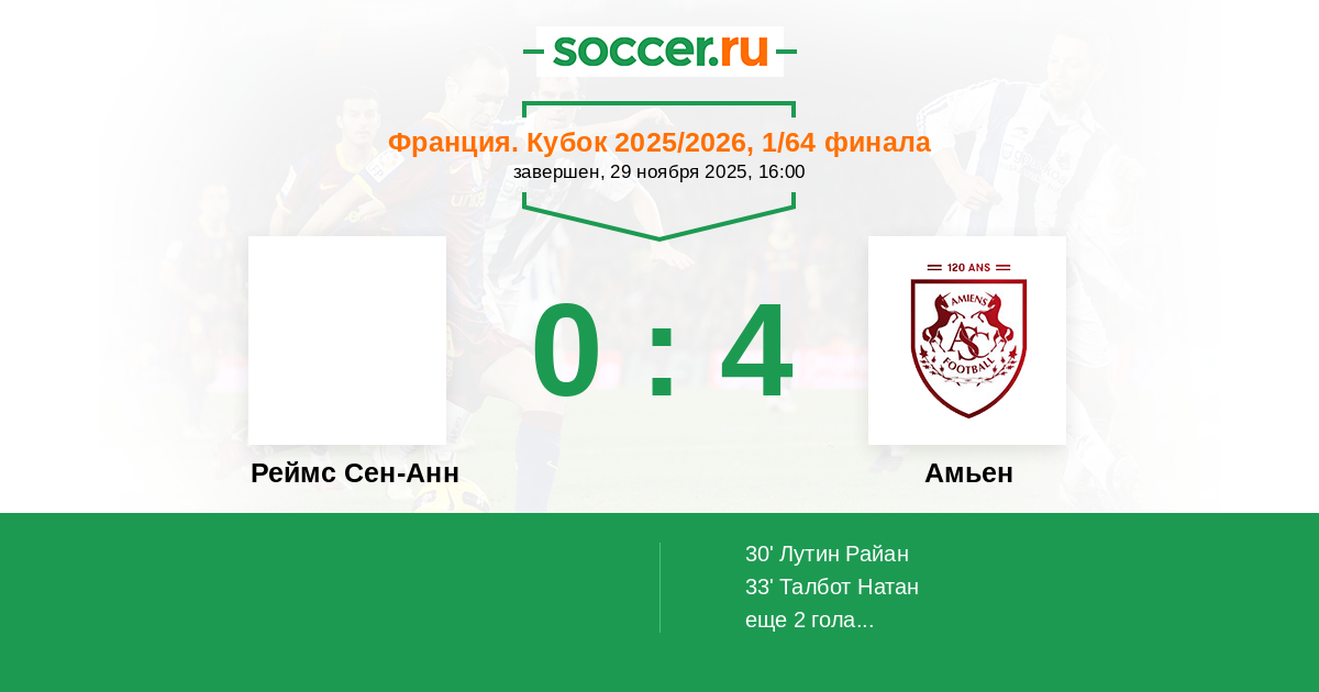 Протокол матча Реймс Сен-Анн против Амьен