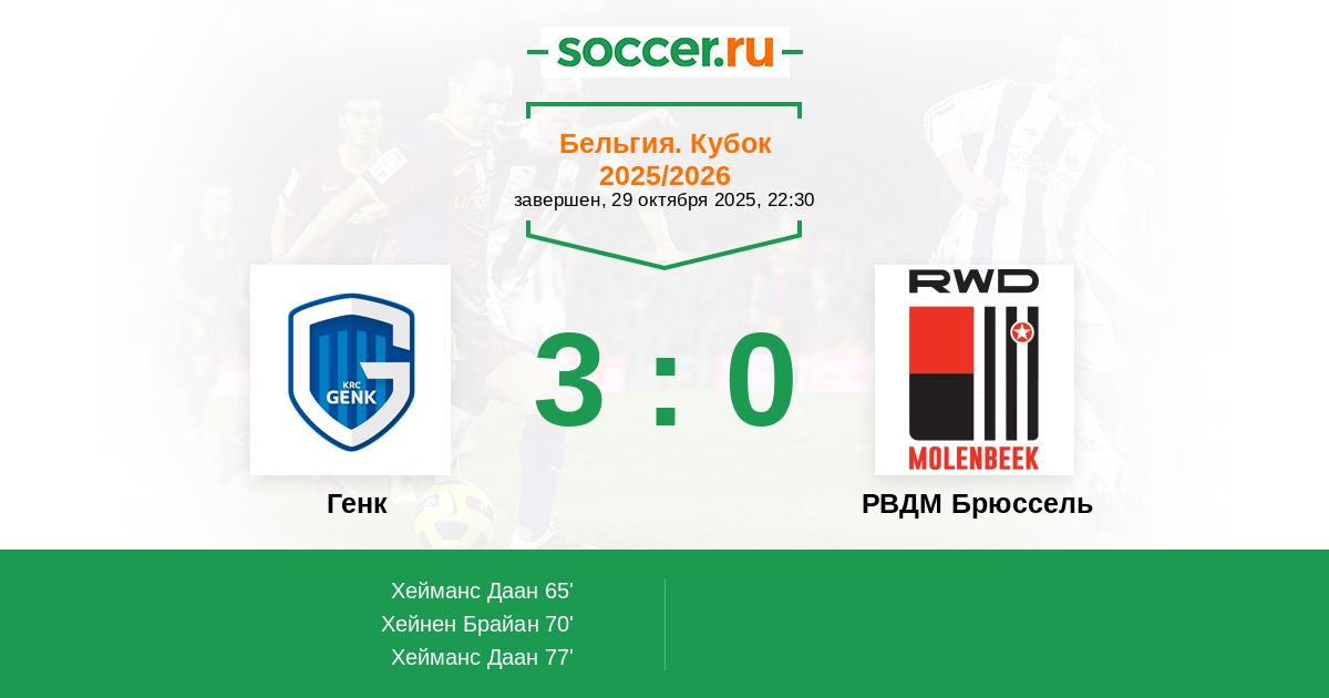 Протокол матча Генк против РВДМ Брюссель