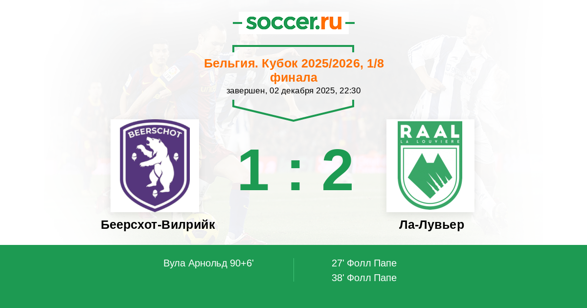 Гол90+6' (1:2) Вула Арнольд (15) (Ван Ину Лукас (8))