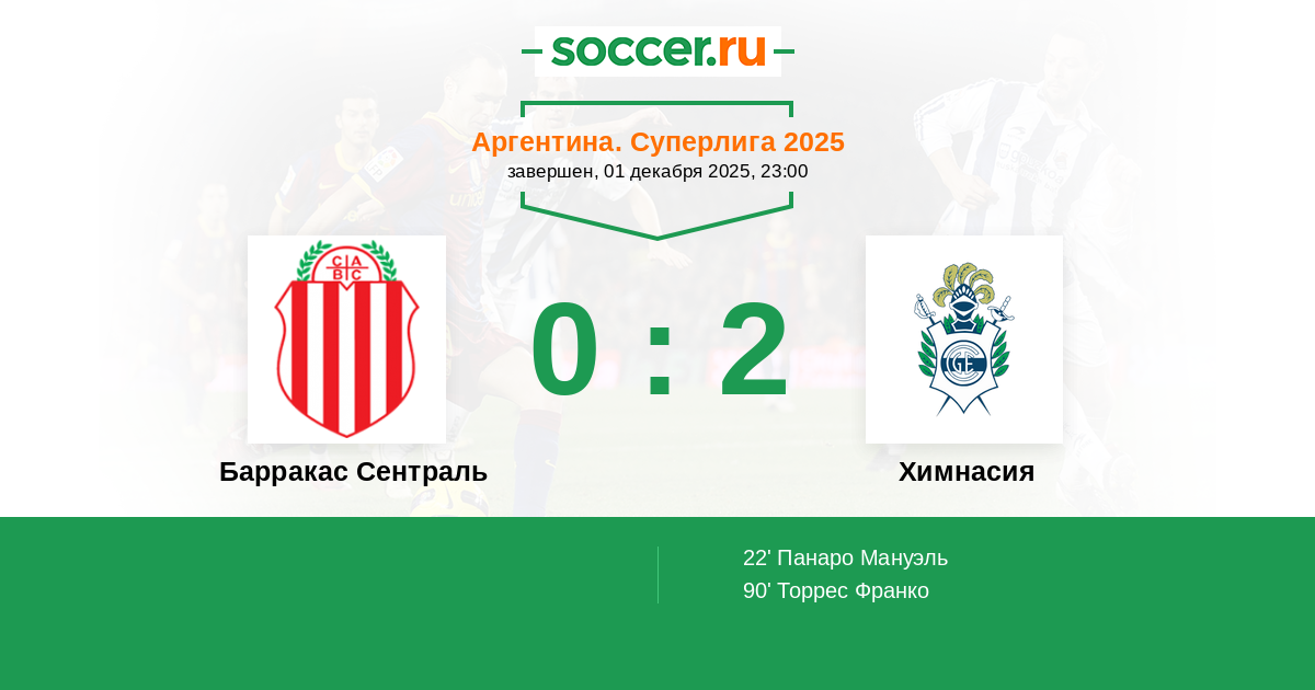 Протокол матча Барракас Сентраль против Химнасия