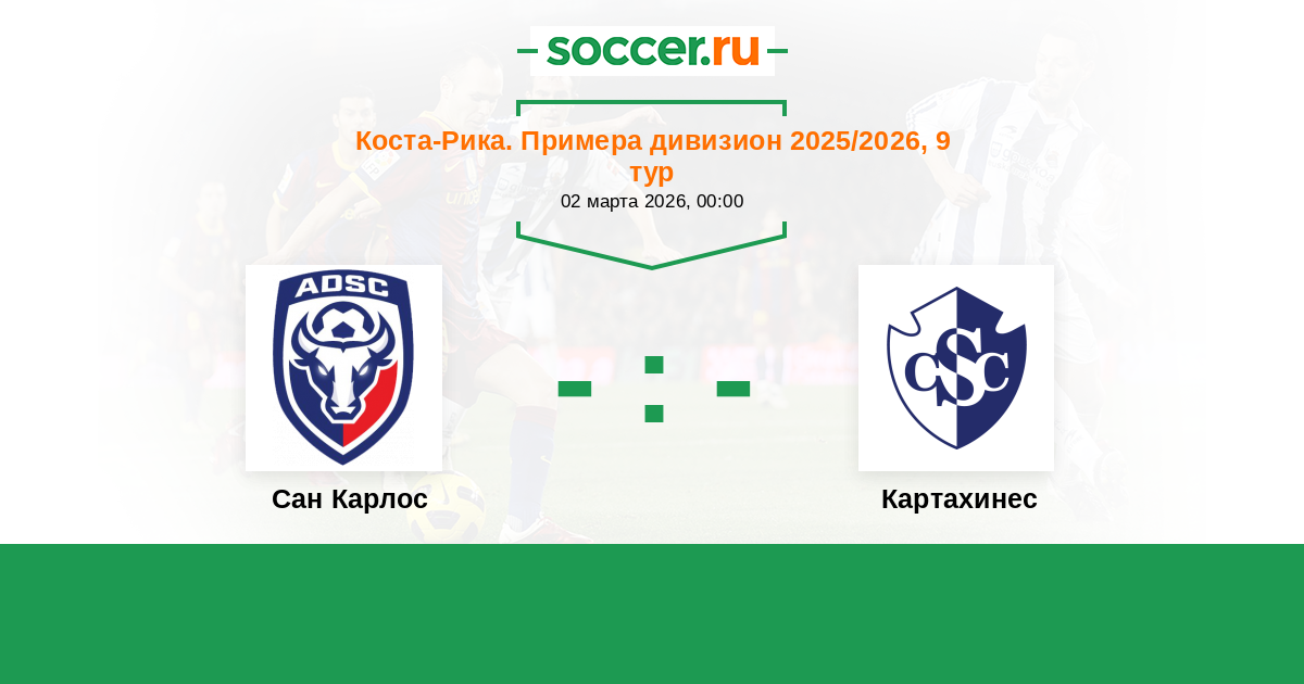 Коста-Рика. Примера дивизион 02.03.2022 Картахинес Логотип футбольный клуб Картахинес (Карфаген) 1:1 Логотип футбольный клуб Сан Карлос (Сьюдад Куэсада) Сан Карлос