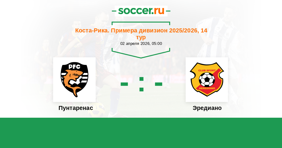 Коста-Рика. Примера дивизион 13.01.2025 Пунтаренас Логотип футбольный клуб Пунтаренас 1:1 Логотип футбольный клуб Эредиано Эредиано