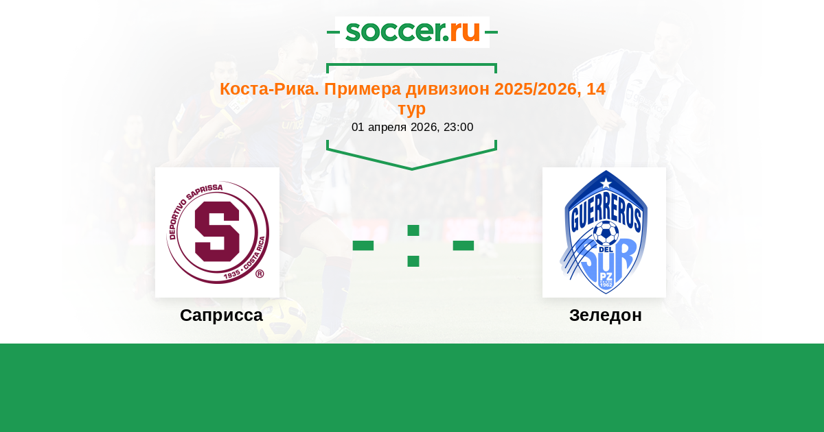 Коста-Рика. Примера дивизион 13.04.2017 Саприсса Логотип футбольный клуб Саприсса (Сан Хосе) 2:1 Логотип футбольный клуб Зеледон (Сан Исидро де Эль Хенерал) Зеледон