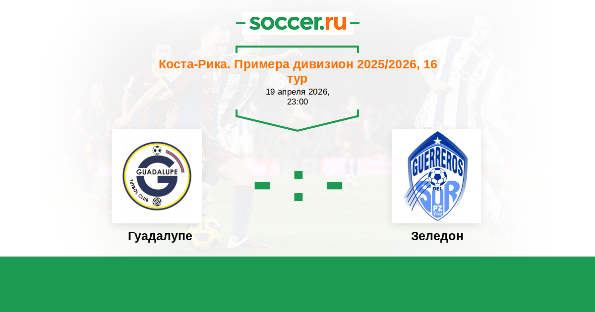 Коста-Рика. Примера дивизион 19.04.2018 Зеледон Логотип футбольный клуб Зеледон (Сан Исидро де Эль Хенерал) 1:1 Логотип футбольный клуб Гуадалупе Гуадалупе