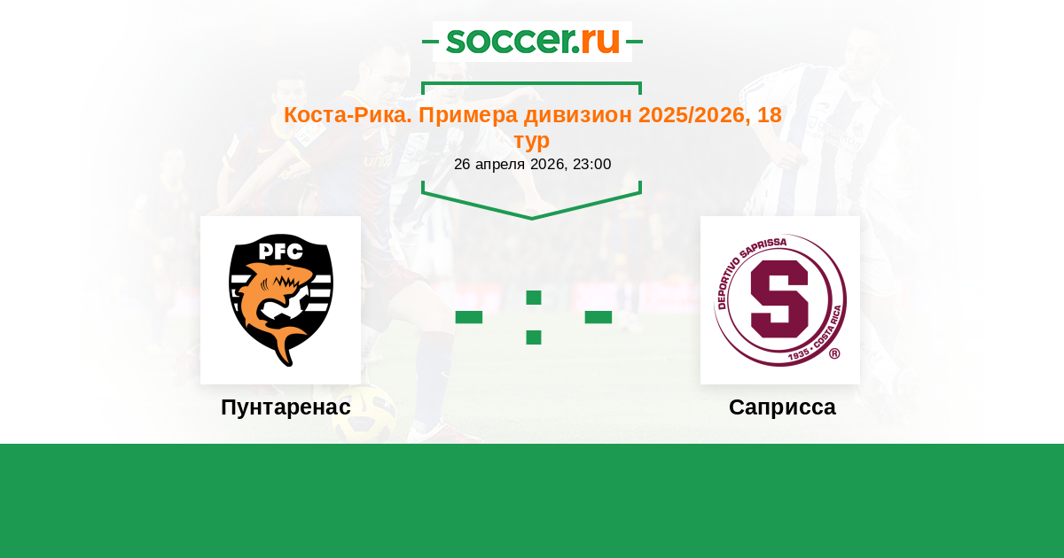 Коста-Рика. Примера дивизион 26.10.2025 Саприсса Логотип футбольный клуб Саприсса (Сан Хосе) 2:1 Логотип футбольный клуб Пунтаренас Пунтаренас