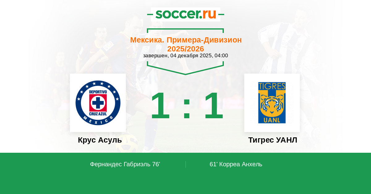 Протокол матча Крус Асуль против Тигрес УАНЛ