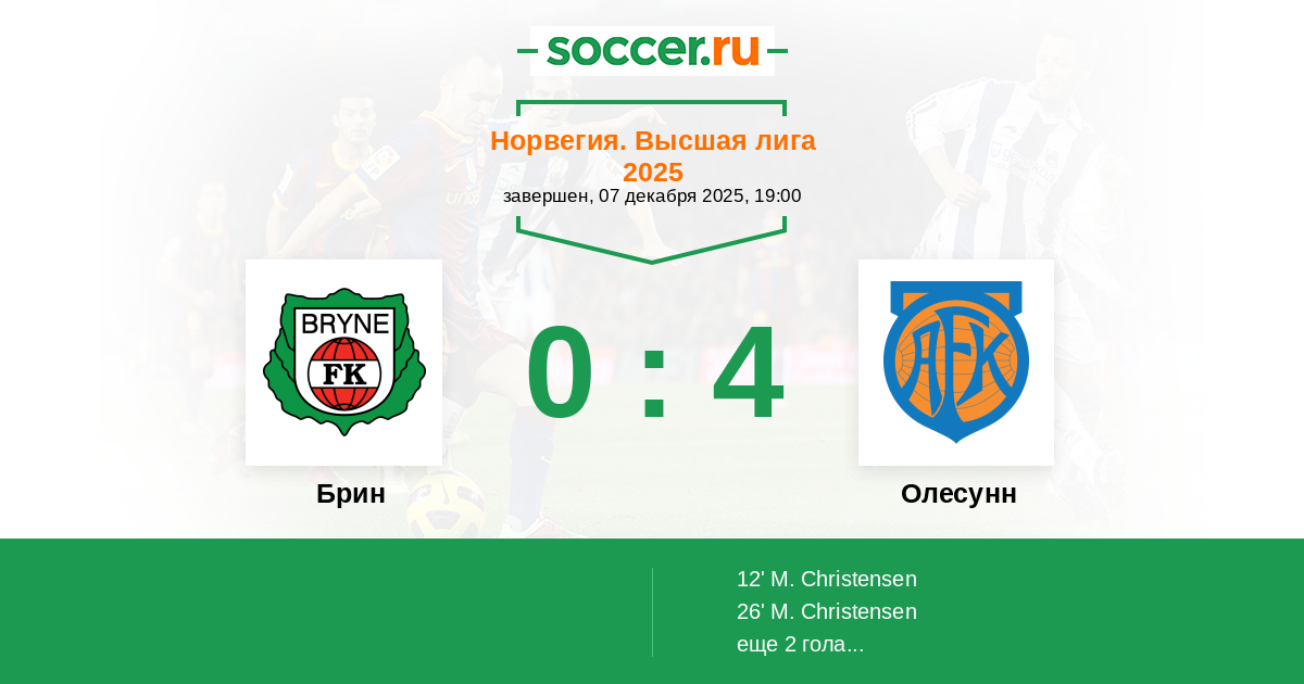 Протокол матча Брин против Олесунн