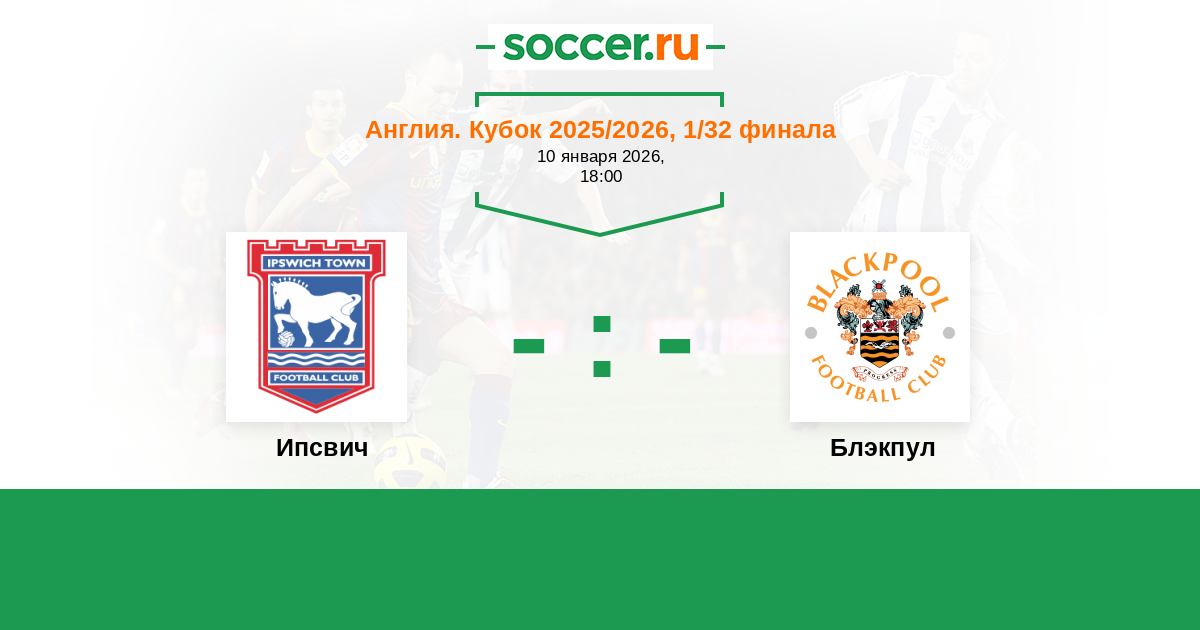 Клубы уходят корнями в 19 век, как очень многие в Англии. Обладают они серьёзными титулами. Ипсвич в сезоне 1961/62 становился чемпионом Англии, в 1978 году брал Кубок Англии. Есть в коллекции и Кубок УЕФА. У Блэкпула за спиной Кубок Англии в 1953 году. Ожидается битва. Победа гостей.
