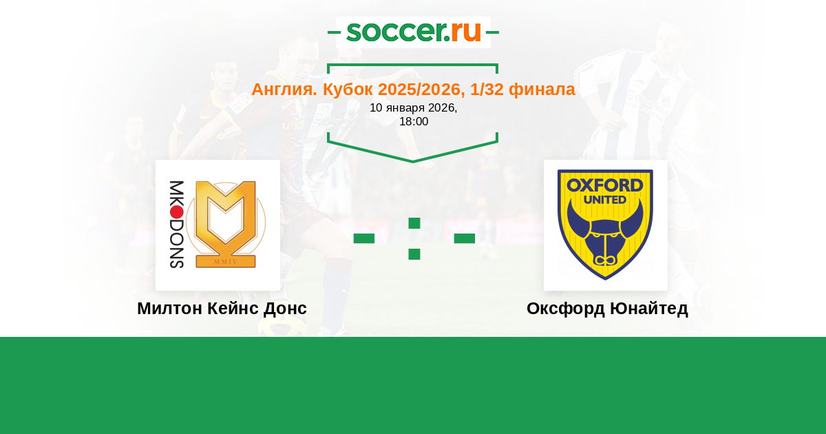 Протокол матча Милтон Кейнс Донс против Оксфорд Юнайтед